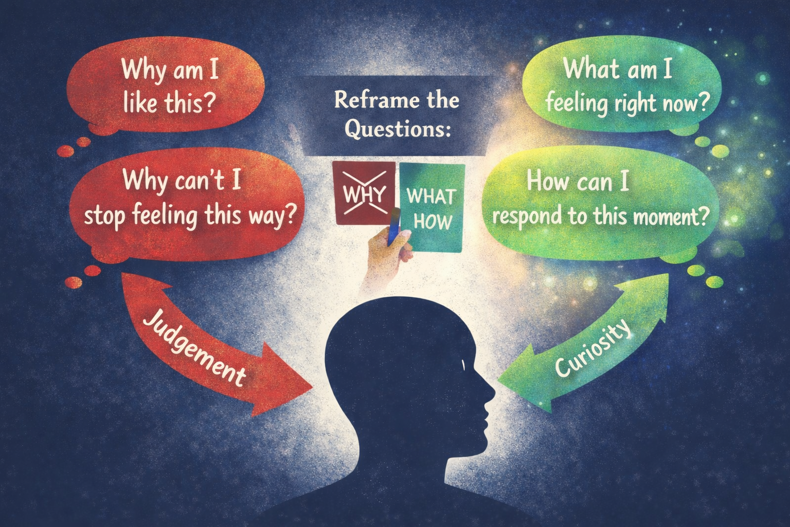 When anxiety appears, it’s natural to want to understand it. But repeatedly asking “why” questions can keep the mind circling the problem rather than moving through it.